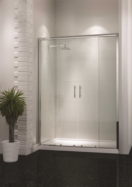 1850mm in height and 20mm adjustment the twin sliding door is made from 6mm thick Tempered safety glass with rollers top and bottom provide that smooth gliding action. Covered with a lifetime guarantee the Vodas 6 will stand the test of time.