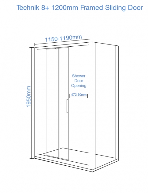 You may have noticed the actual dimensions of the framed sliding door is different to advertised 1200mm size. This is because you need to take in to account the wall tiles which will be installed on top of your new shower tray. Below you can see how it works. If you need any further assistance please contact our bathroom experts