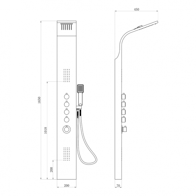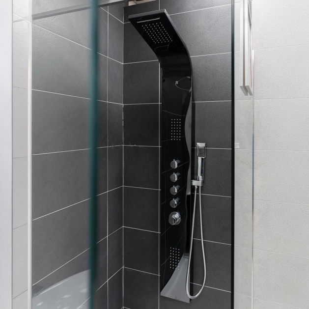 Our Waterfall Shower Tower is the pinnacle of modern luxury, available in both polished chrome and sleek black finishes. Its seamless design and minimalist aesthetic make it a standout choice for contemporary bathrooms. This ultra-modern shower unit offers exceptional features, including a fixed rainfall head with a striking waterfall flow, two body jets for a refreshing massage experience, and a handheld shower head for flexibility. Built with fast-acting thermostatic control, the Monsoon maintains your preferred water temperature, providing both comfort and safety. It combines style and functionality for an elevated shower experience without compromise.