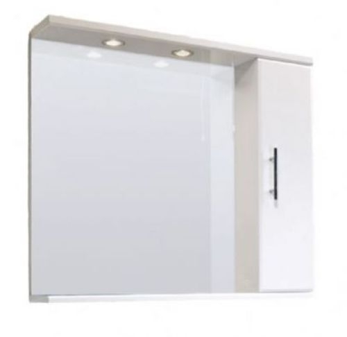 High gloss white mirror and cabinet which colour matches all of the blanco bathroom furniture.