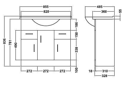 Make the most of your space with our Blanco 850mm deep vanity Unit. It's supplied in contemporary white high gloss and is complete with ceramic basin and comes pre assembled with soft close doors and ceramic basin.