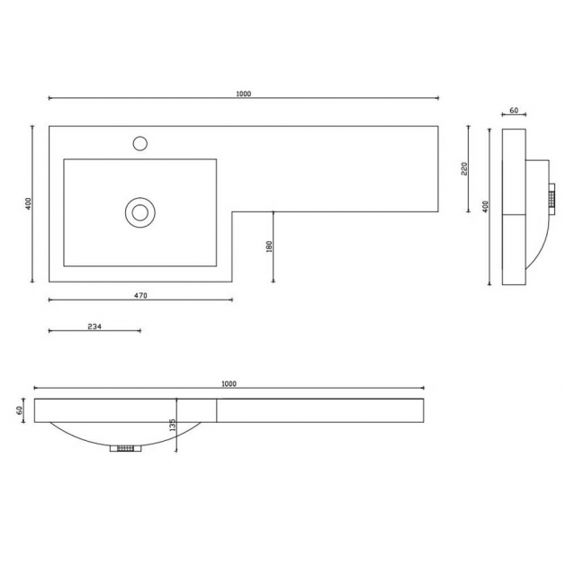 White Gloss Furniture Run 1000mm Left Hand or Right Hand Basin